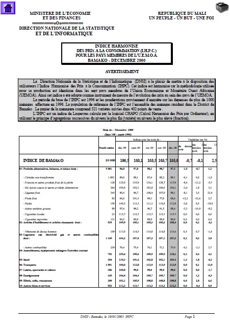 La Direction Nationale de la Statistique et de l’Informatique (DNSI) a le plaisir de mettre à la disposition des