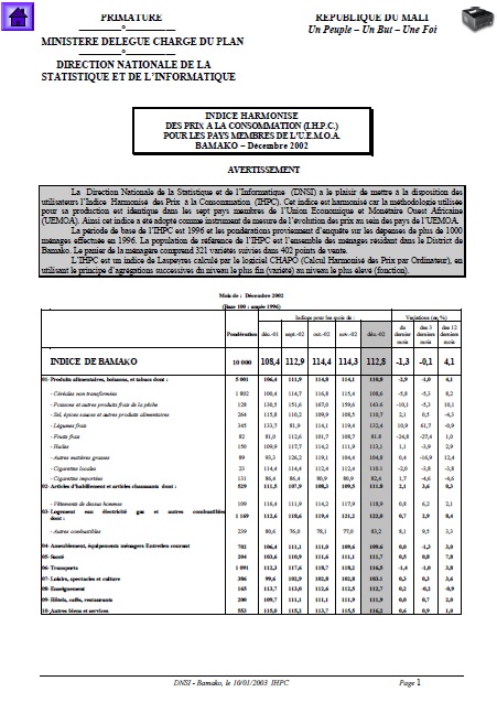 La Direction Nationale de la Statistique et de l’Informatique (DNSI) a le plaisir de mettre à la disposition des
