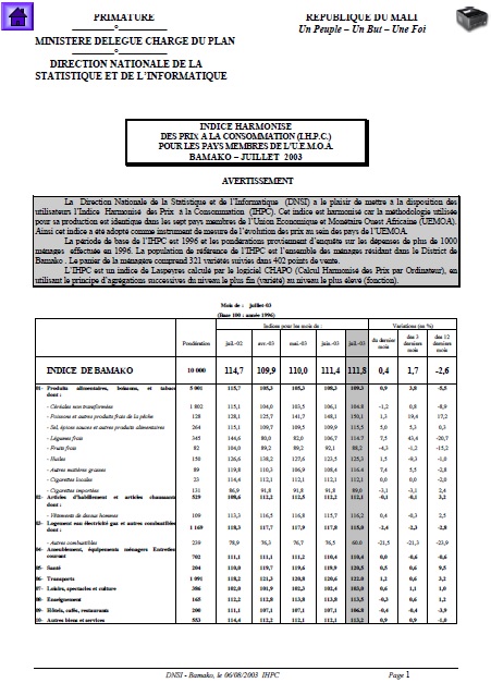 La Direction Nationale de la Statistique et de l’Informatique (DNSI) a le plaisir de mettre à la disposition des