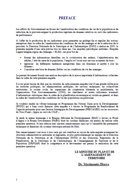 techniques et financiers du système statistique national du Mali.