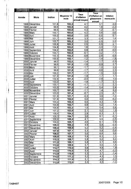INFLATION A BAMAKO DE DECEMBRE 1998 A JUIN 2005