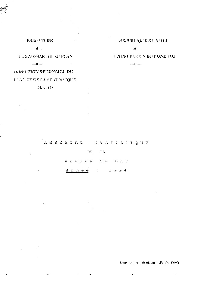 Annuaire statistique Région de Gao 1994, 06 1994