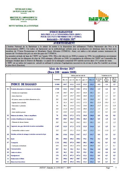 ménages résidant dans le District de Bamako. Le panier de la ménagère comprend 650 variétés suivies dans 1511 points de vente.