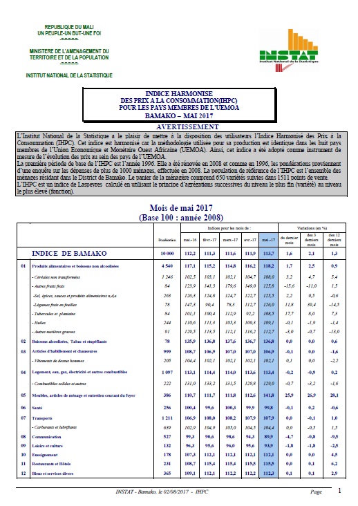 ménages résidant dans le District de Bamako. Le panier de la ménagère comprend 650 variétés suivies dans 1511 points de vente.