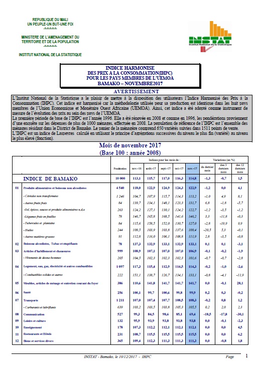 L’Institut National de la Statistique a le plaisir de mettre à la disposition des utilisateurs l’Indice Harmonis des Prix à la