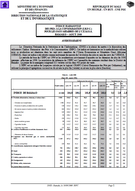La Direction Nationale de la Statistique et de l’Informatique (DNSI) a le plaisir de mettre à la disposition des
