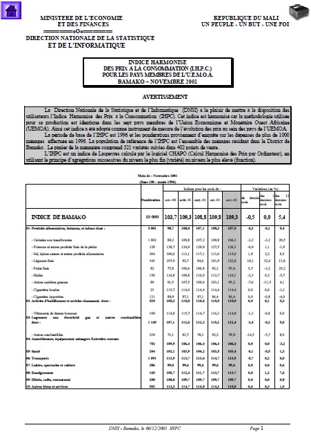 La Direction Nationale de la Statistique et de l’Informatique (DNSI) a le plaisir de mettre à la disposition des
