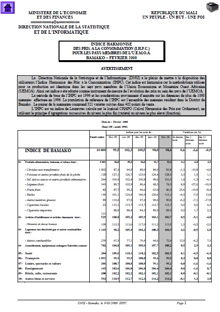 INDICE HARMONISE DES PRIX A LA CONSOMMATION (I.H.P.C.) POUR LES PAYS MEMBRES DE L'U.E.M.O.A. BAMAKO – FEVRIER 2000