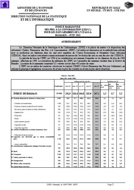 La Direction Nationale de la Statistique et de l’Informatique (DNSI) a le plaisir de mettre à la disposition des