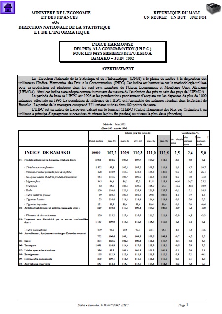 La Direction Nationale de la Statistique et de l’Informatique (DNSI) a le plaisir de mettre à la disposition des