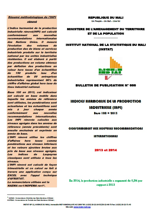 INSTAT-BP 12, AVENUE DU MALI, Immeuble MEF HAMDALLAYE ACI 2000 Tél: (+223) 20-22-24-55/20-22-48-73 Fax: (+223) 20-22-71-45