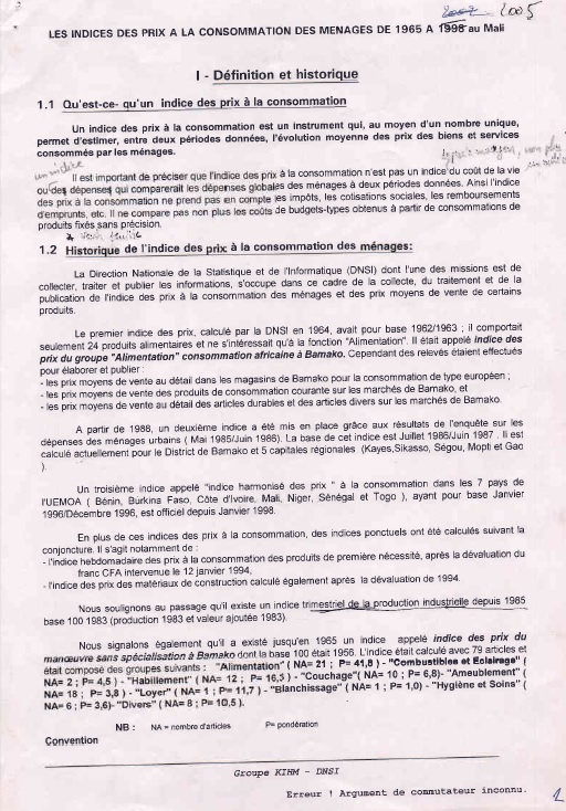 Les Indices des Prix à la Consommation des Menages de 1965 à 2005 Au Mali