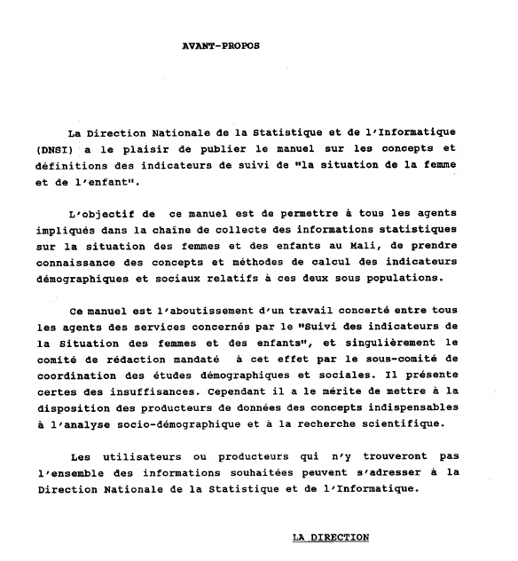 Manuel Concepts et Définition des Indicateurs de suivi de la situat de la Femme et de l'Enfant