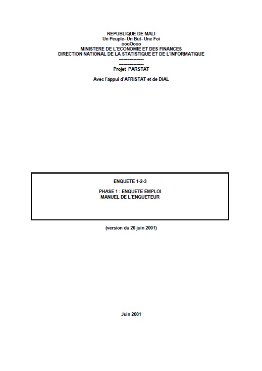 La phase 1 de l'enquête 1-2-3 est une enquête sur l'emploi. C'est une enquête auprès des ménages qui vise trois objectifs :