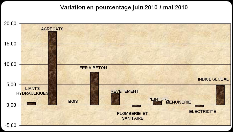 Au mois de juin 2010 le niveau de l'indice des matériaux et produits de construction est de 117,6
