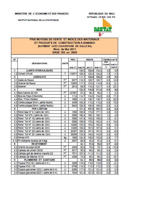 ET PRODUITS DE CONSTRUCTION A BAMAKO