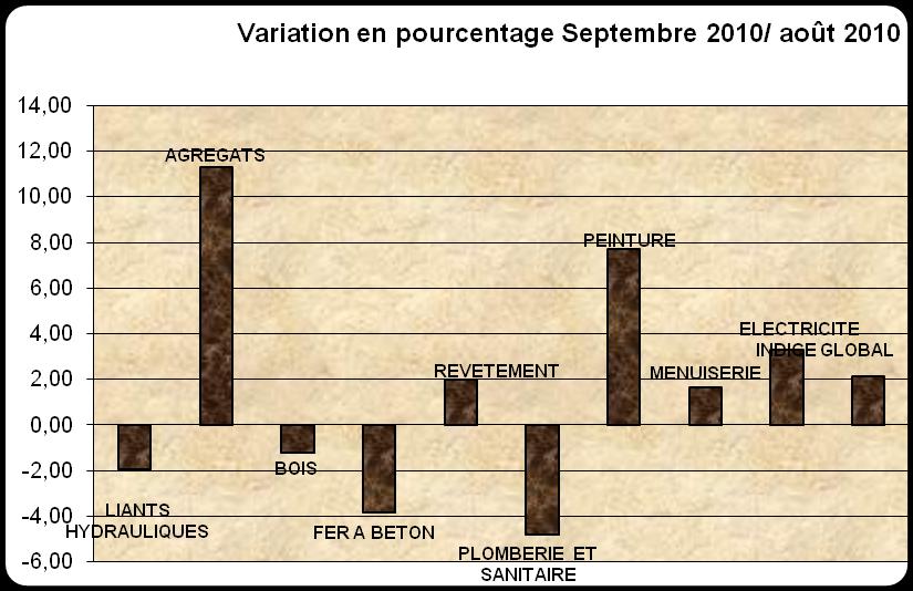 Au mois de septembre 2010 le niveau de l'indice des matériaux et produits de construction est de 116,8