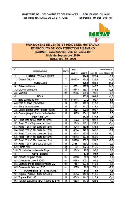 ET PRODUITS DE CONSTRUCTION A BAMAKO