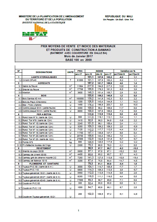 ET PRODUITS DE CONSTRUCTION A BAMAKO