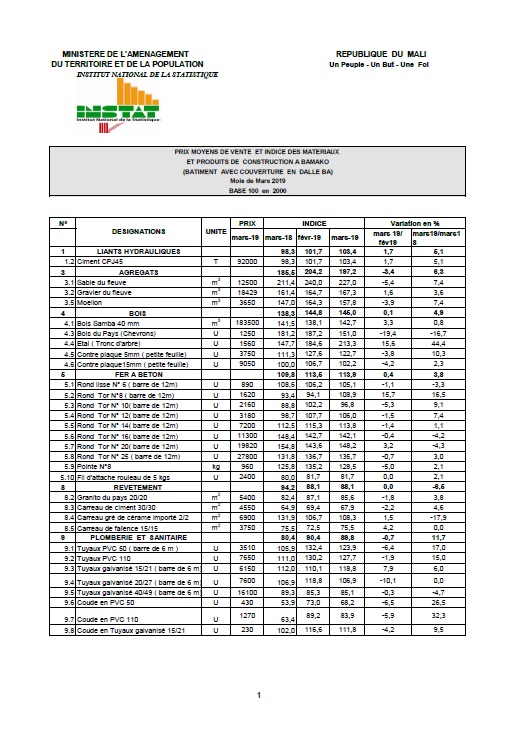 ET PRODUITS DE CONSTRUCTION A BAMAKO