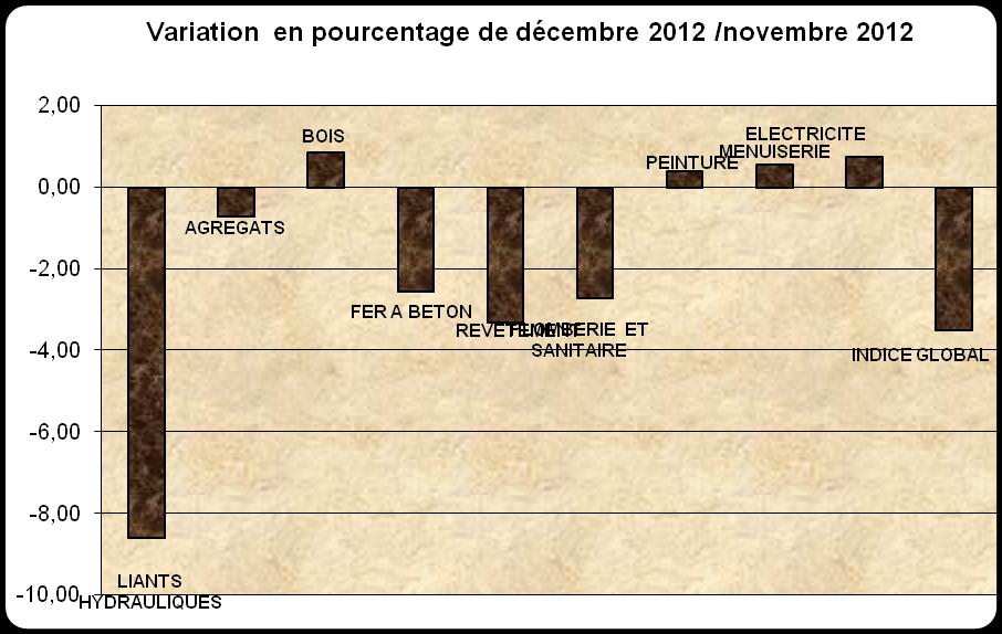 Au mois de décembre 2012 le niveau de l'indice des matériaux et produits de construction est de 116,0