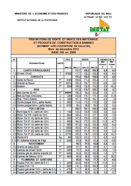 ET PRODUITS DE CONSTRUCTION A BAMAKO