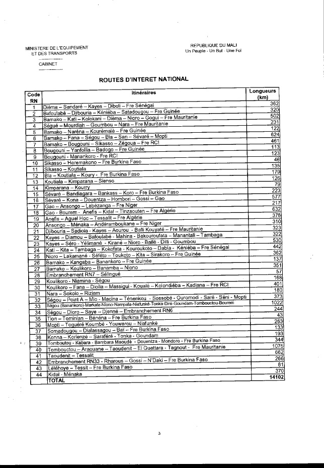 Longueur des Routes d'Intérets National
