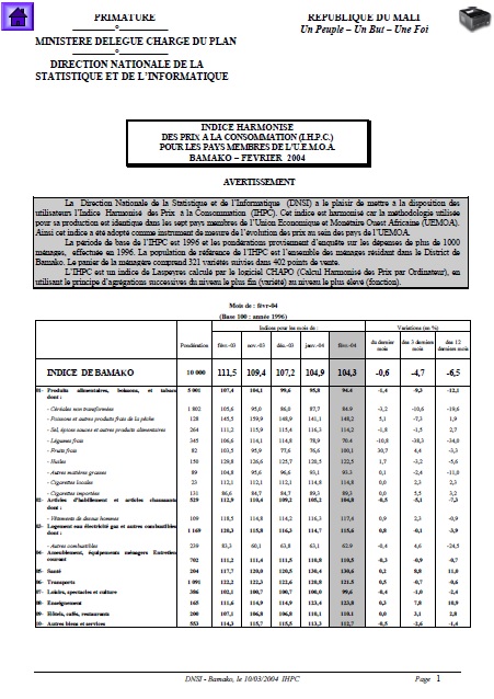La Direction Nationale de la Statistique et de l’Informatique (DNSI) a le plaisir de mettre à la disposition des