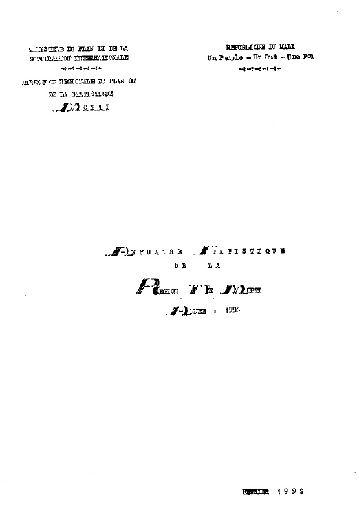 Annuaire statistique Région de Mopti 1990, 02 1992