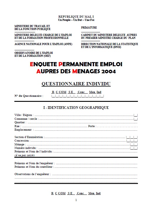---------------------- DIRECTION NATIONALE DE LA STATISTIQUE ET DE L'INFORMATIQUE (DNSI) |