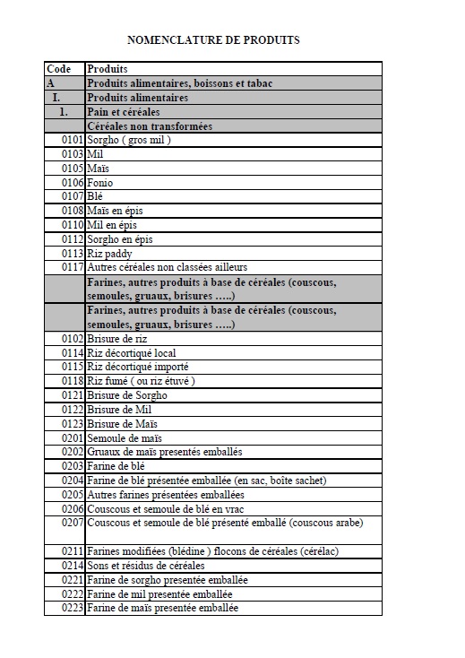 NOMENCLATURE DE PRODUITS