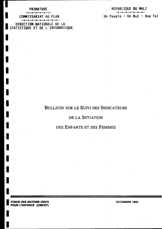 Bulletin sur le suivi des indicateurs de la situation des enfants et des femmes - Déc 1993