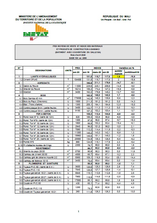 ET PRODUITS DE CONSTRUCTION A BAMAKO
