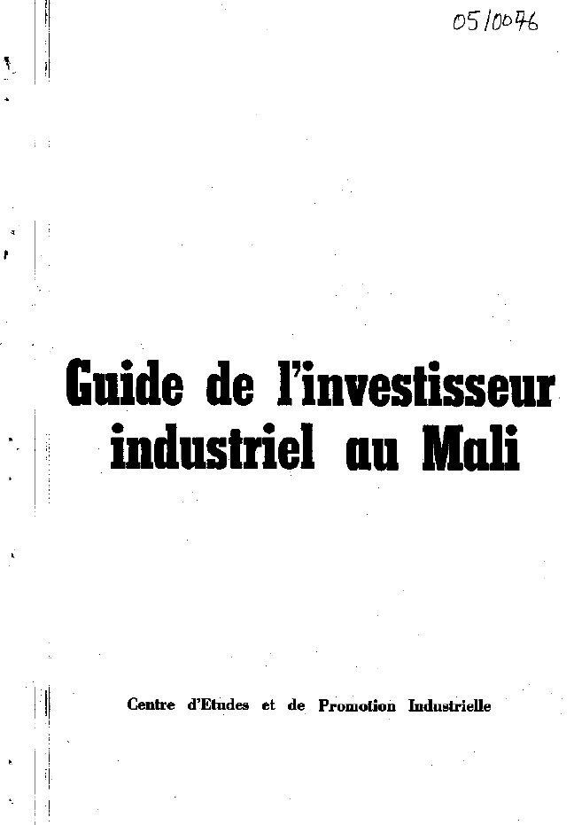 Guide de l'investisseur industriel au Mali - 1982